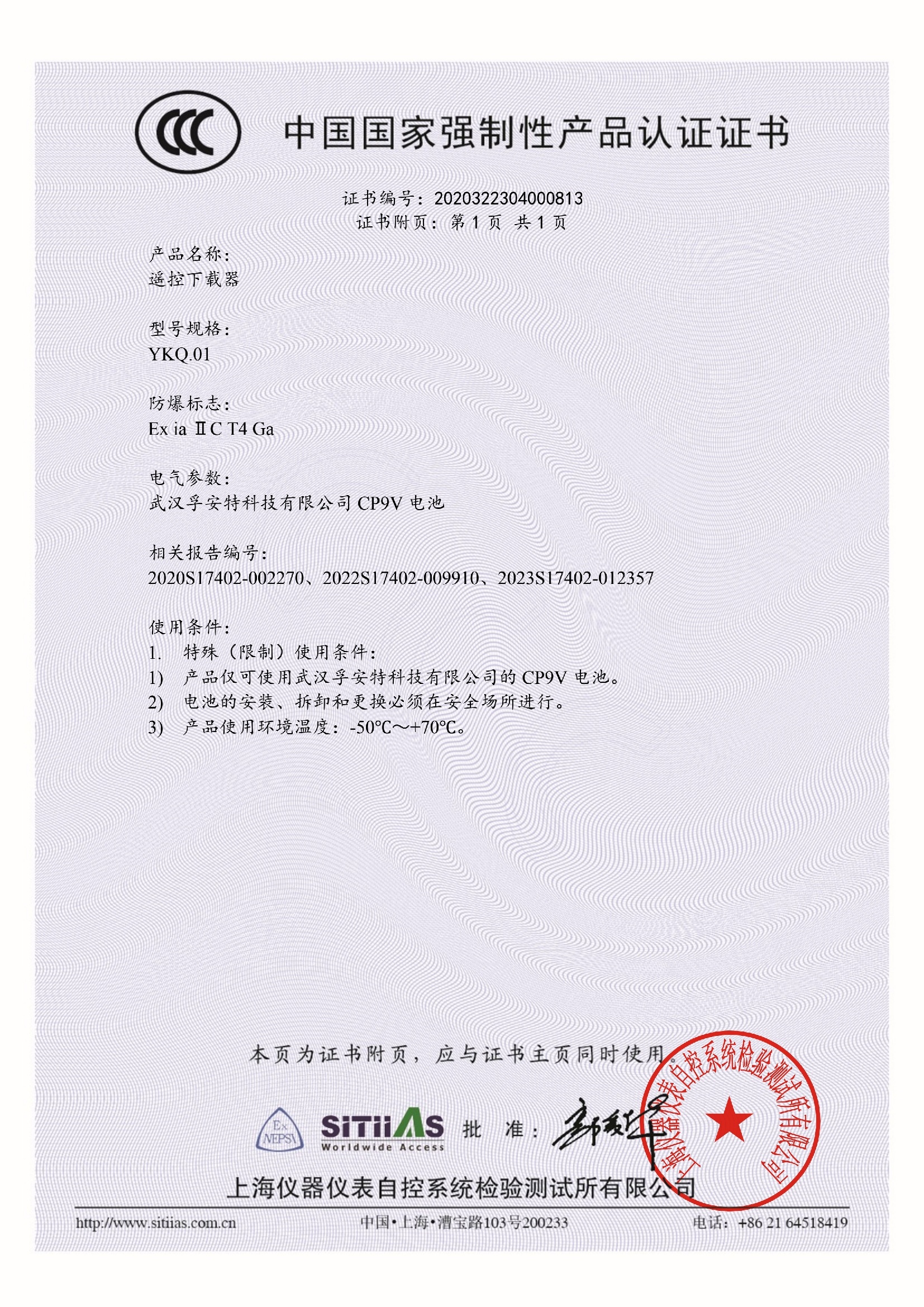 遥控下载器CCC证书