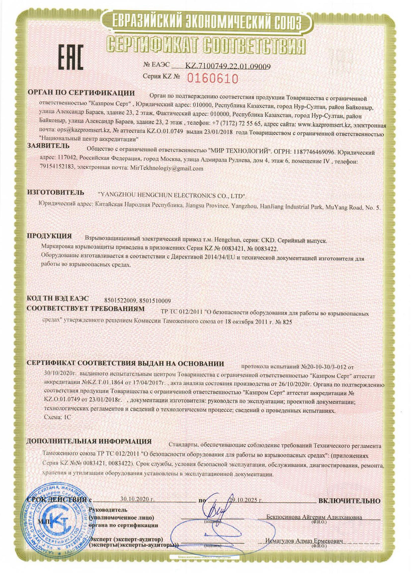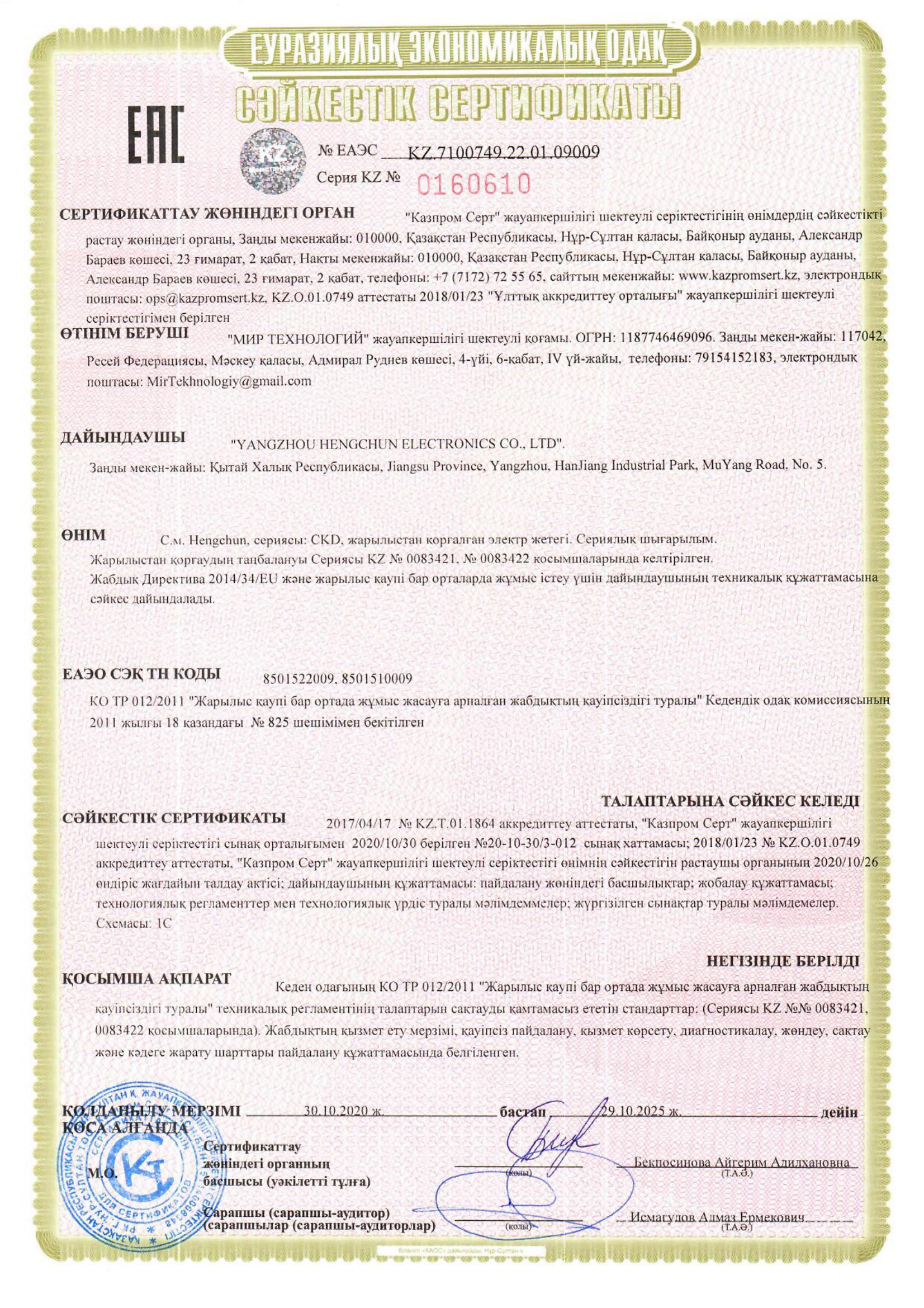 俄罗斯海关联盟EAC认证(CU-TR)CT4BT4-50~70(TPTC012)
