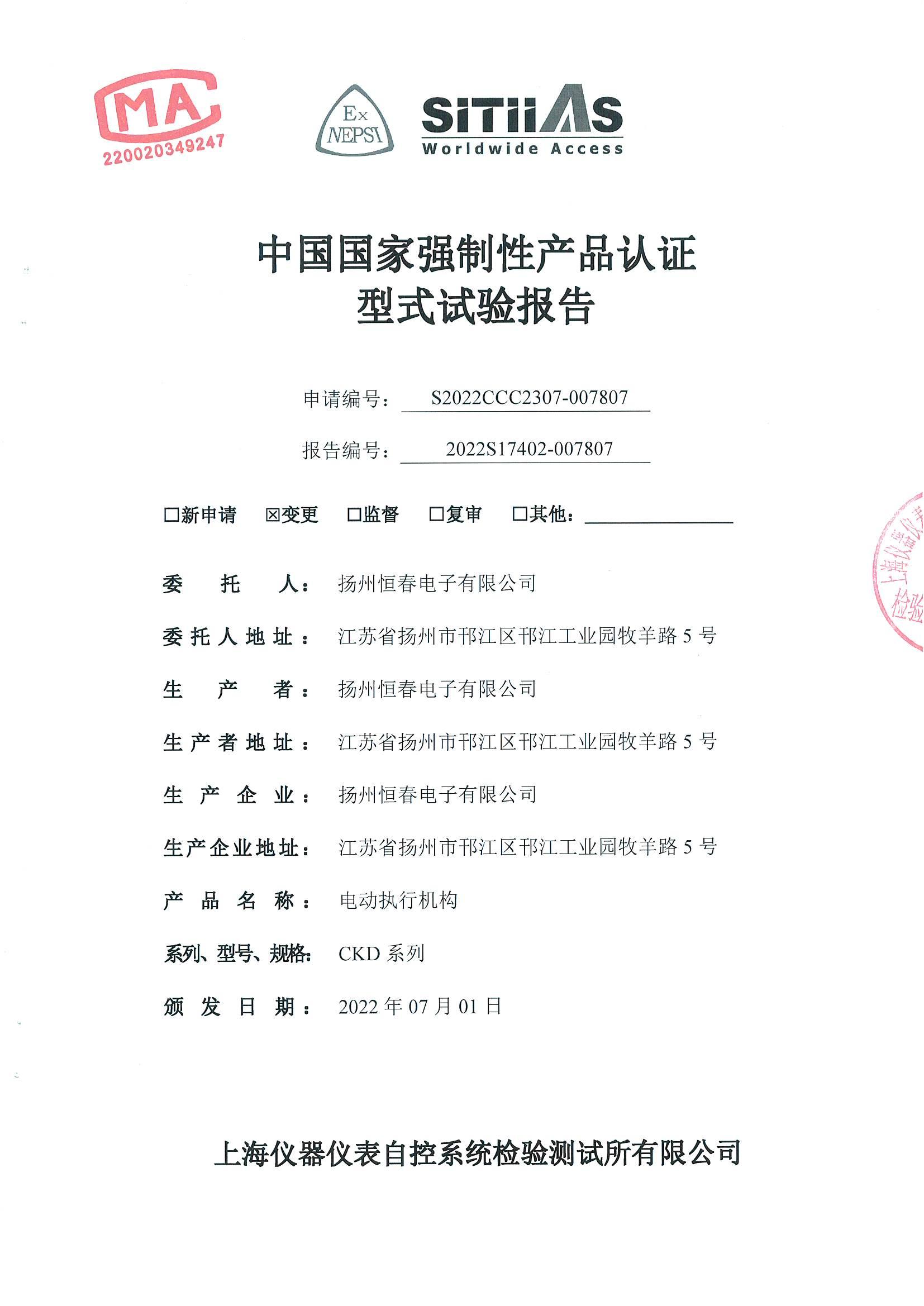 2022S17402-007807 CKD 系列CCC检测报告