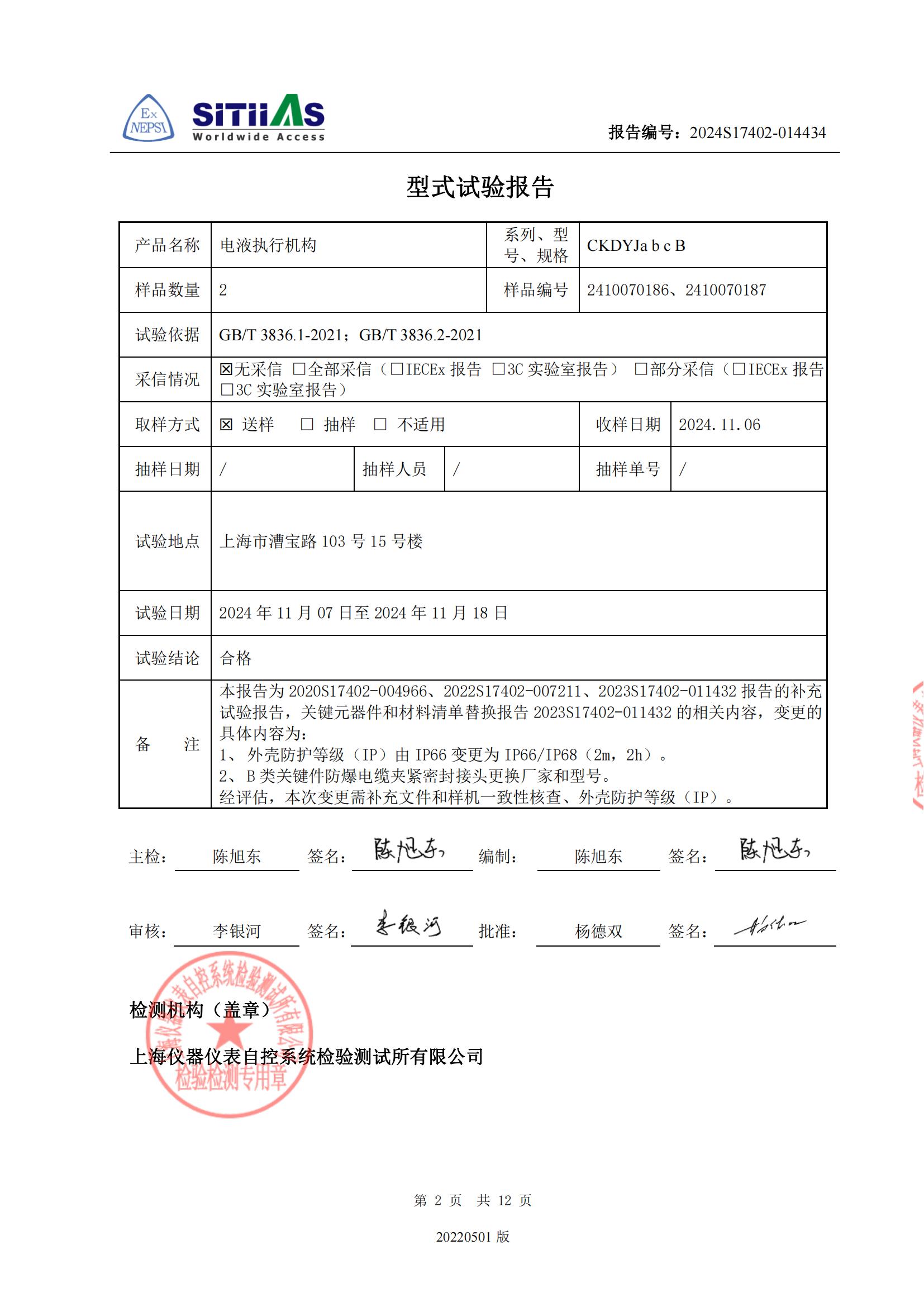 2022S17402-007212 电液执行机构型式试验报告