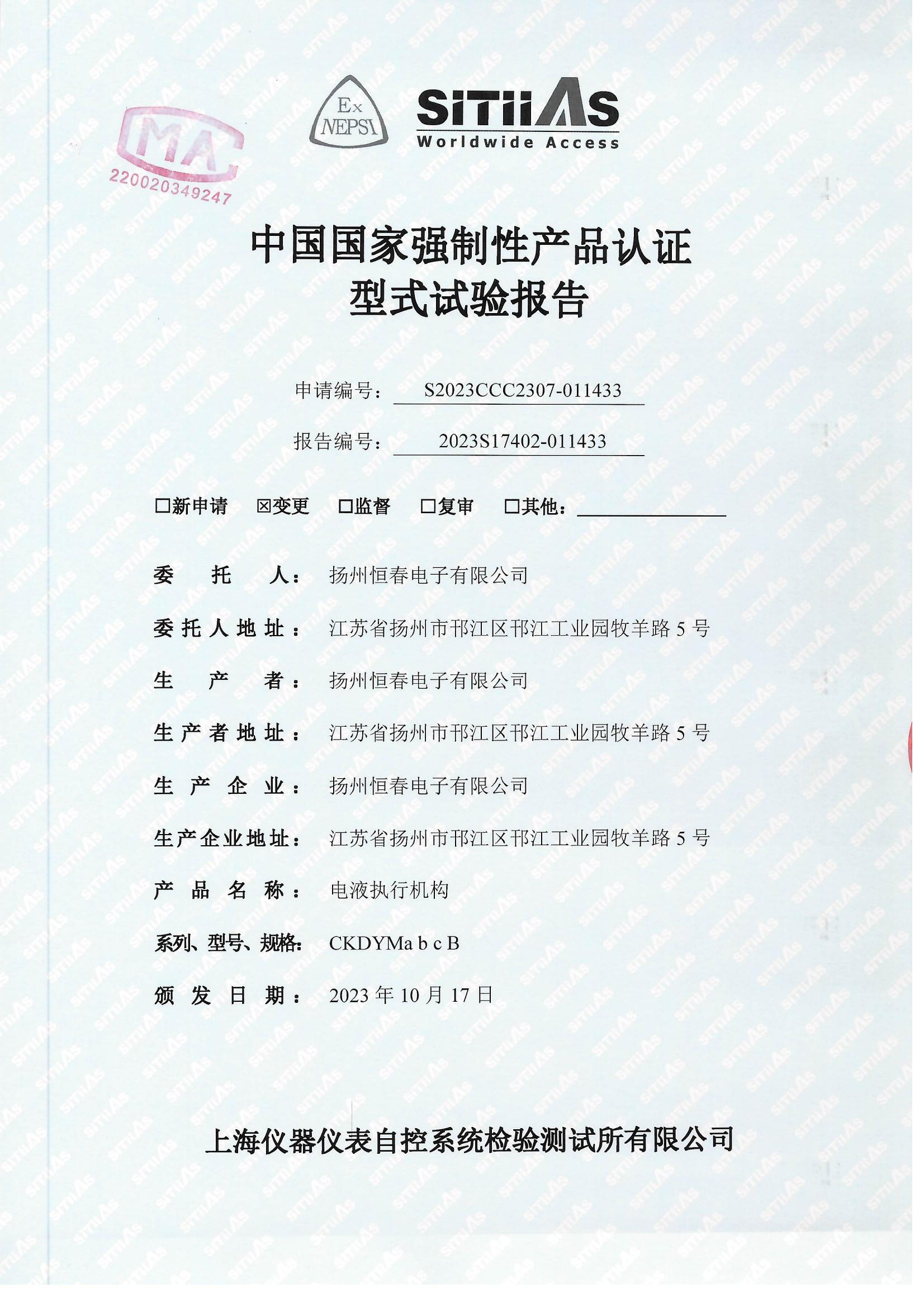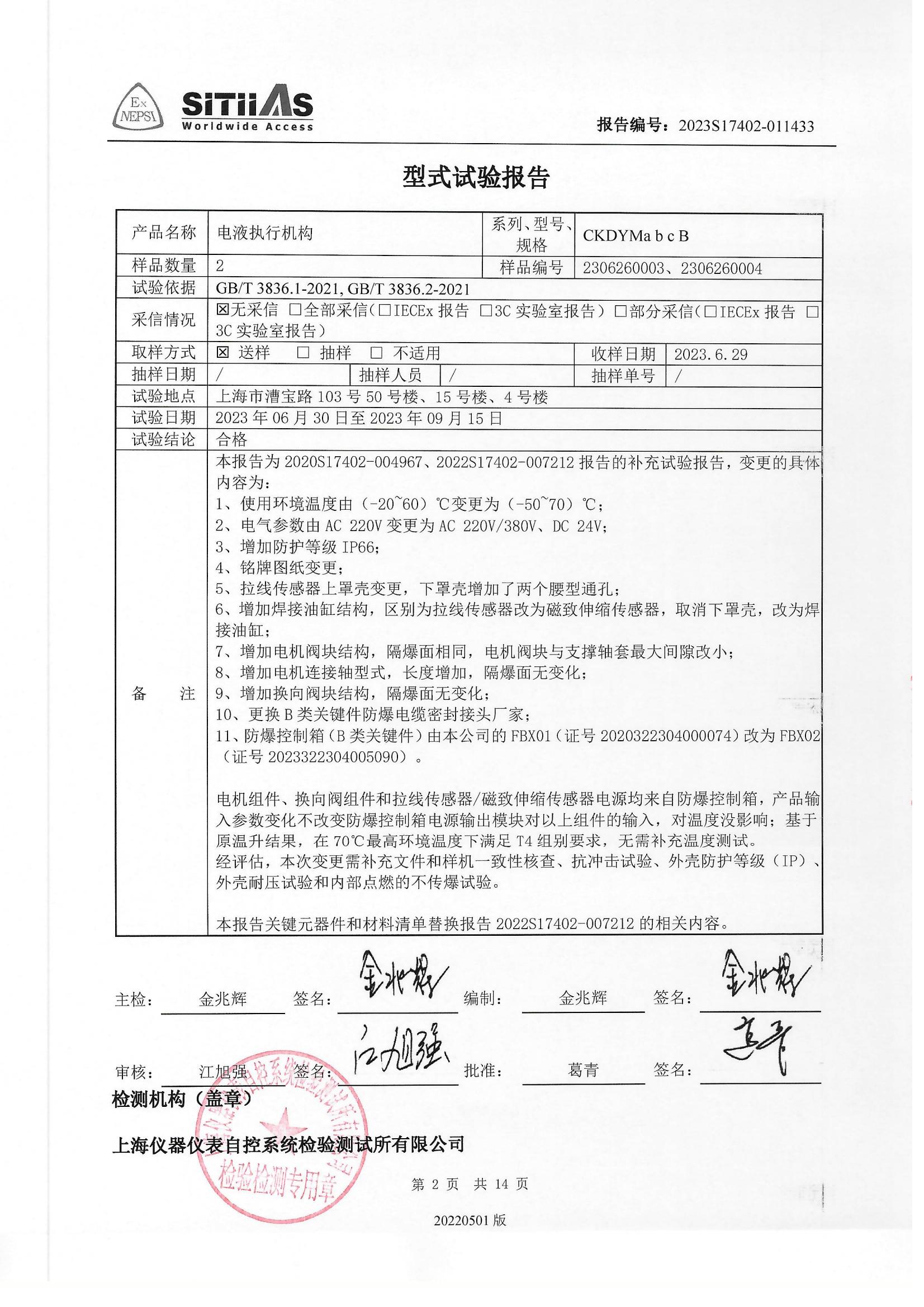 2022S17402-007212 电液执行机构型式试验报告