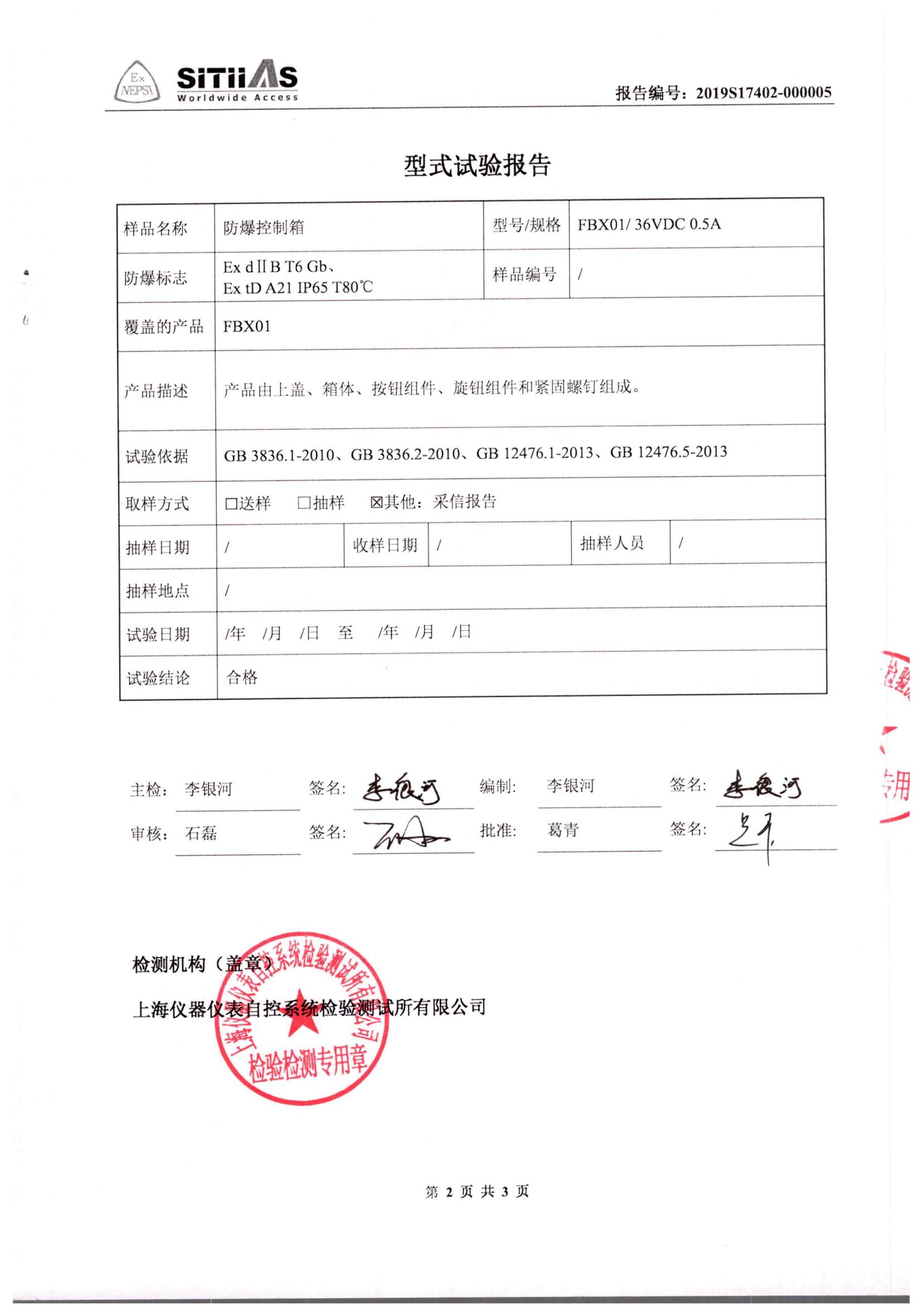 2019S17402-000005 防爆控制箱3C型式试验报告
