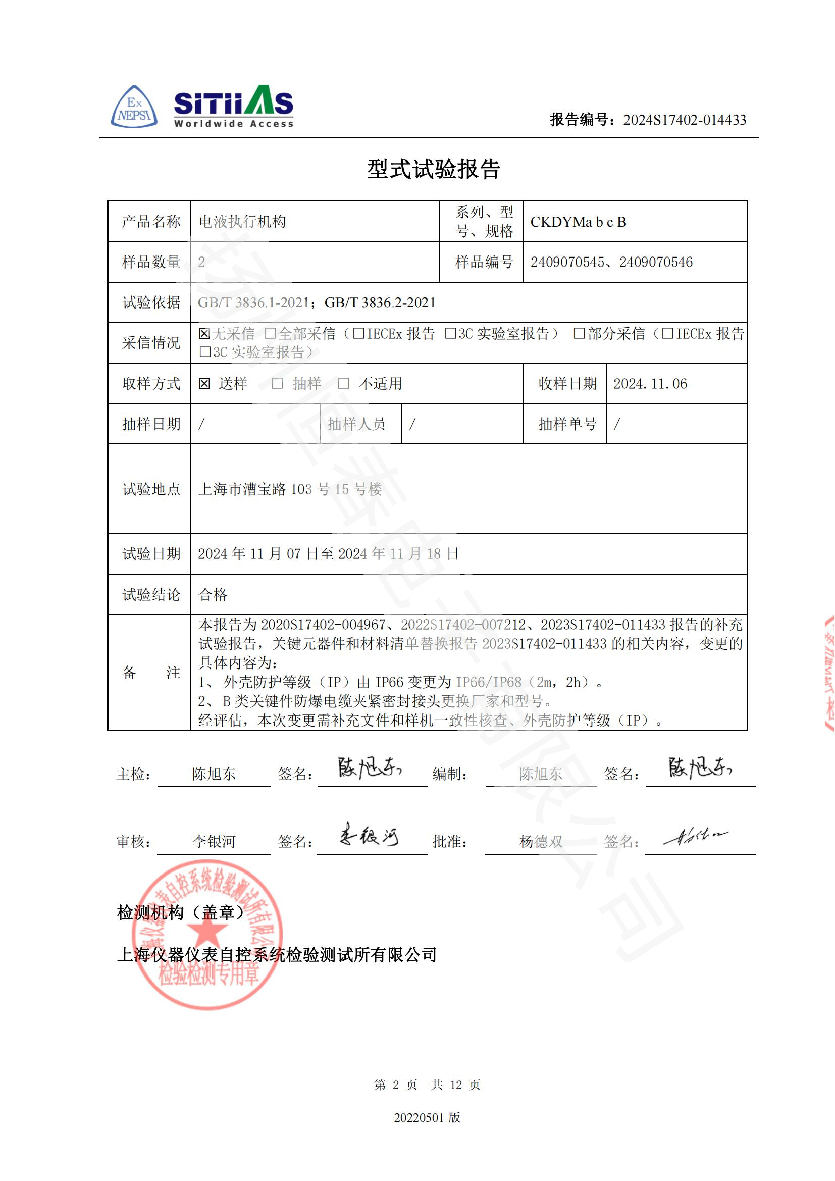 上一篇 2019S17402-000005 防爆控制箱3C型式试验报告
