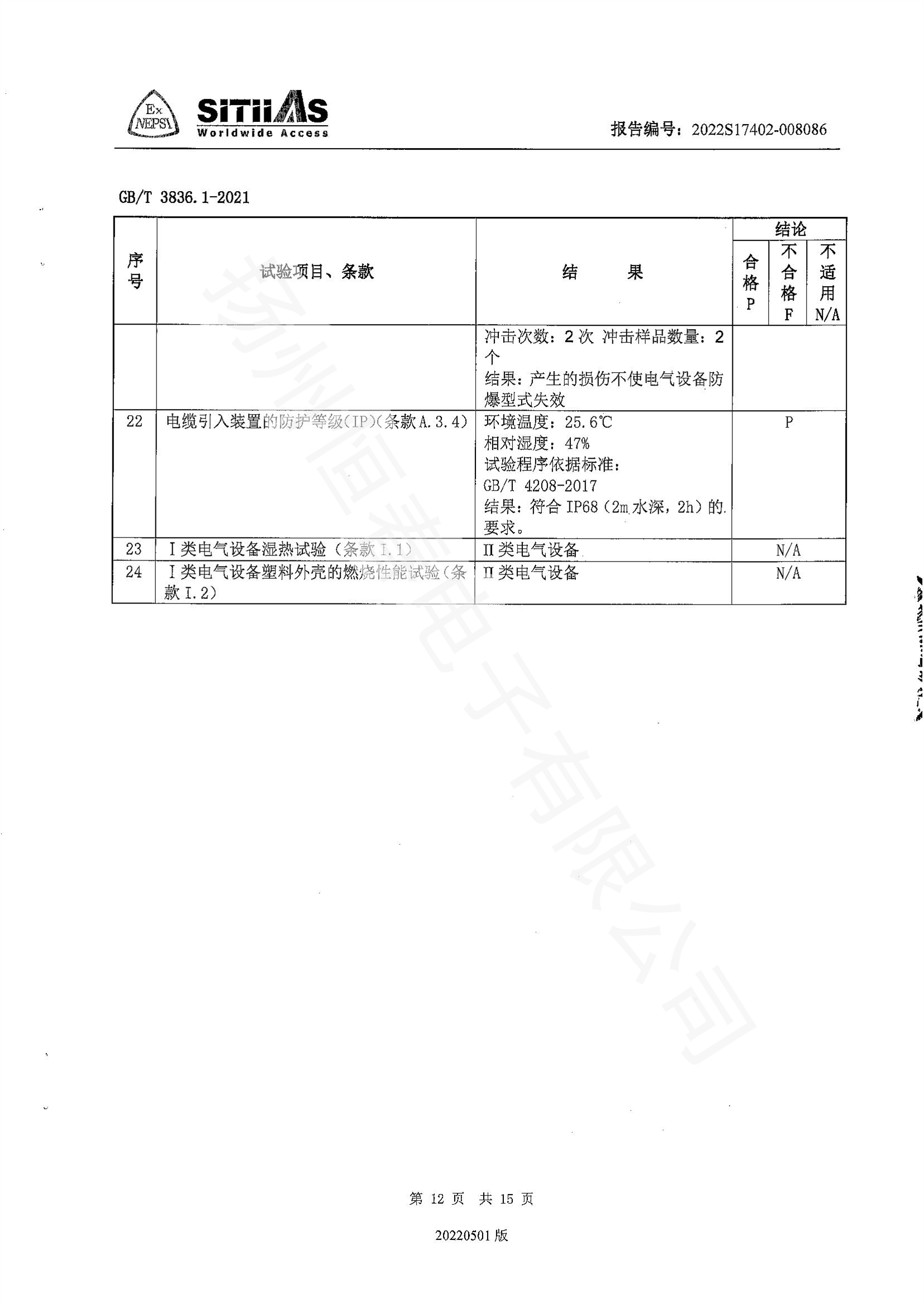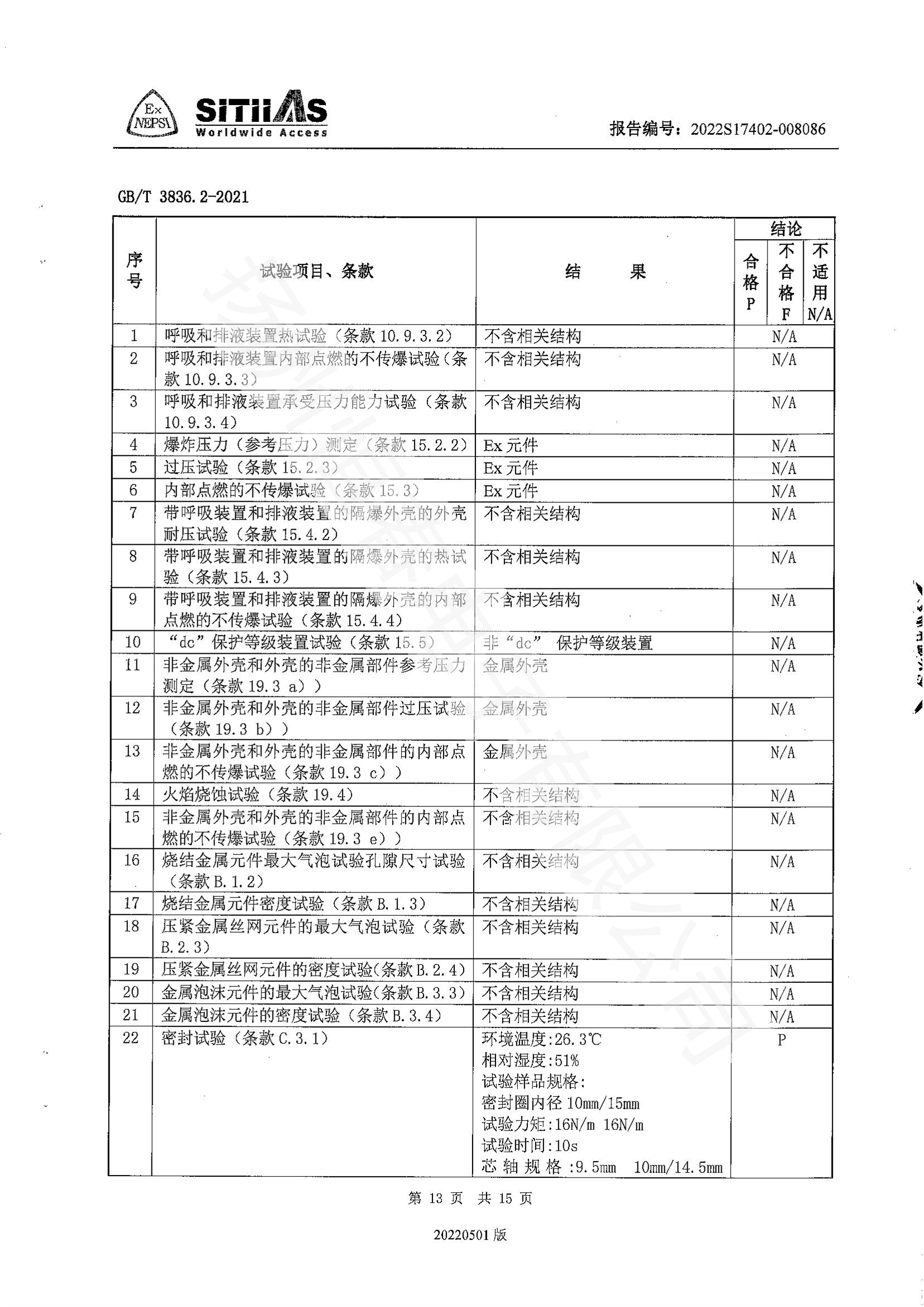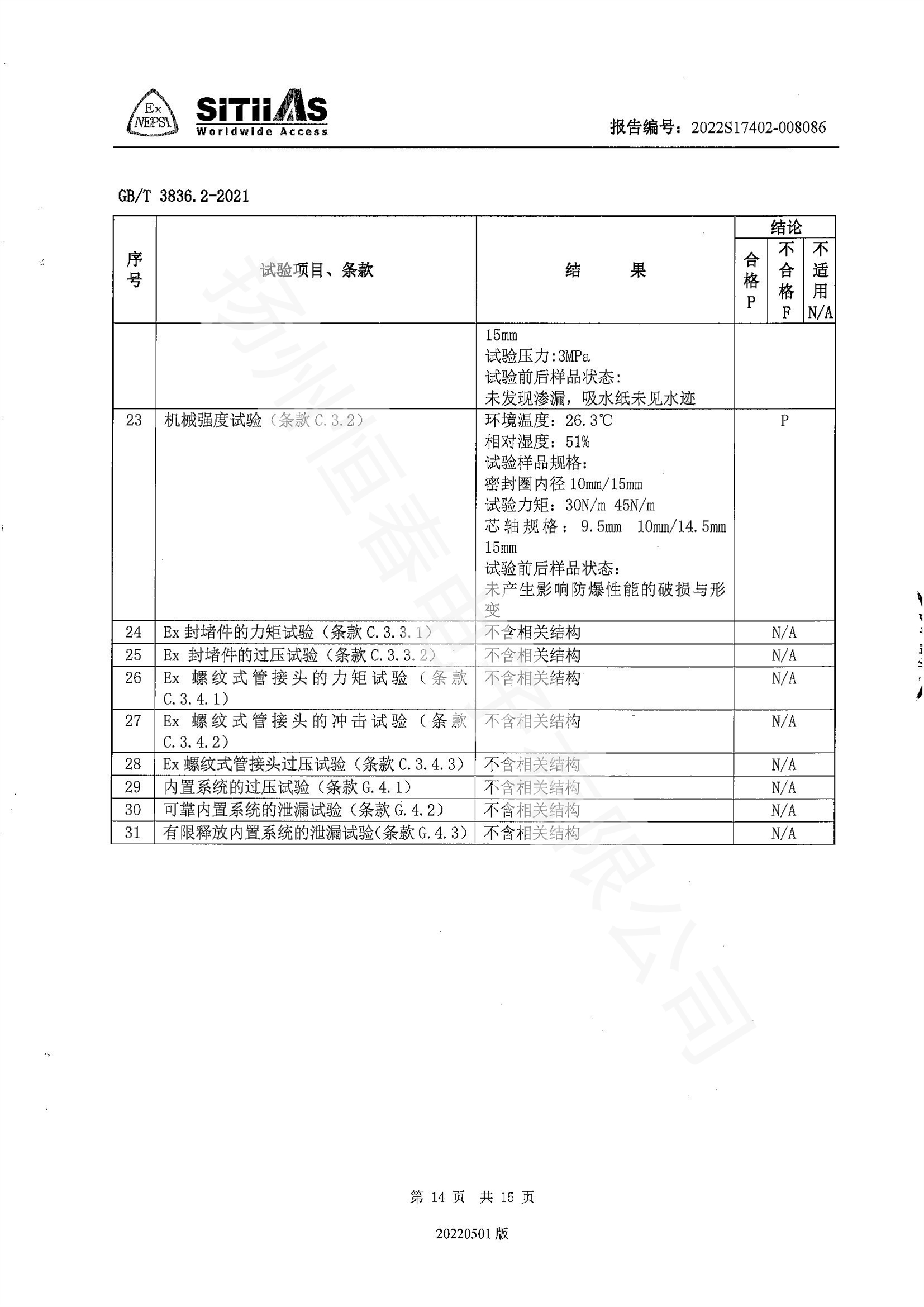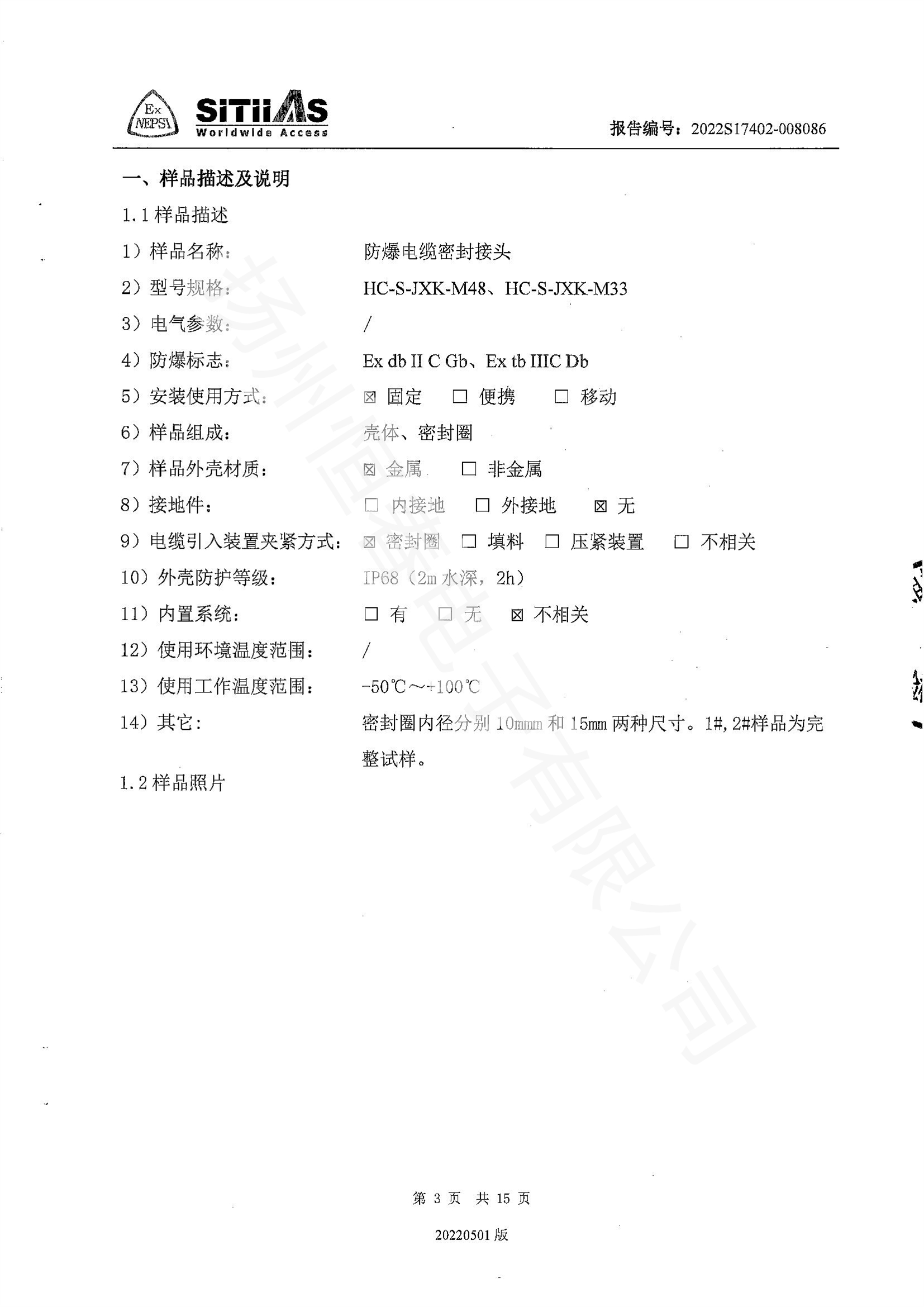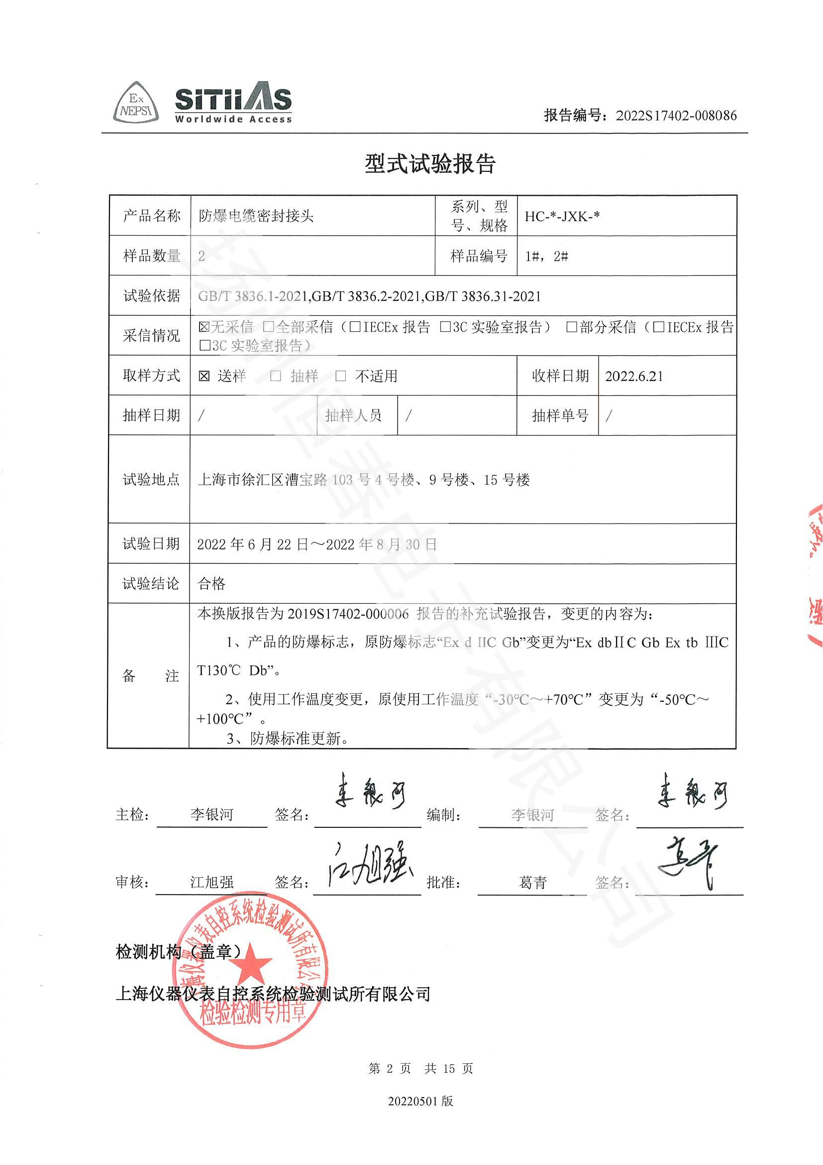 2022S17402-008086 防爆电缆密封接头型式试验报告