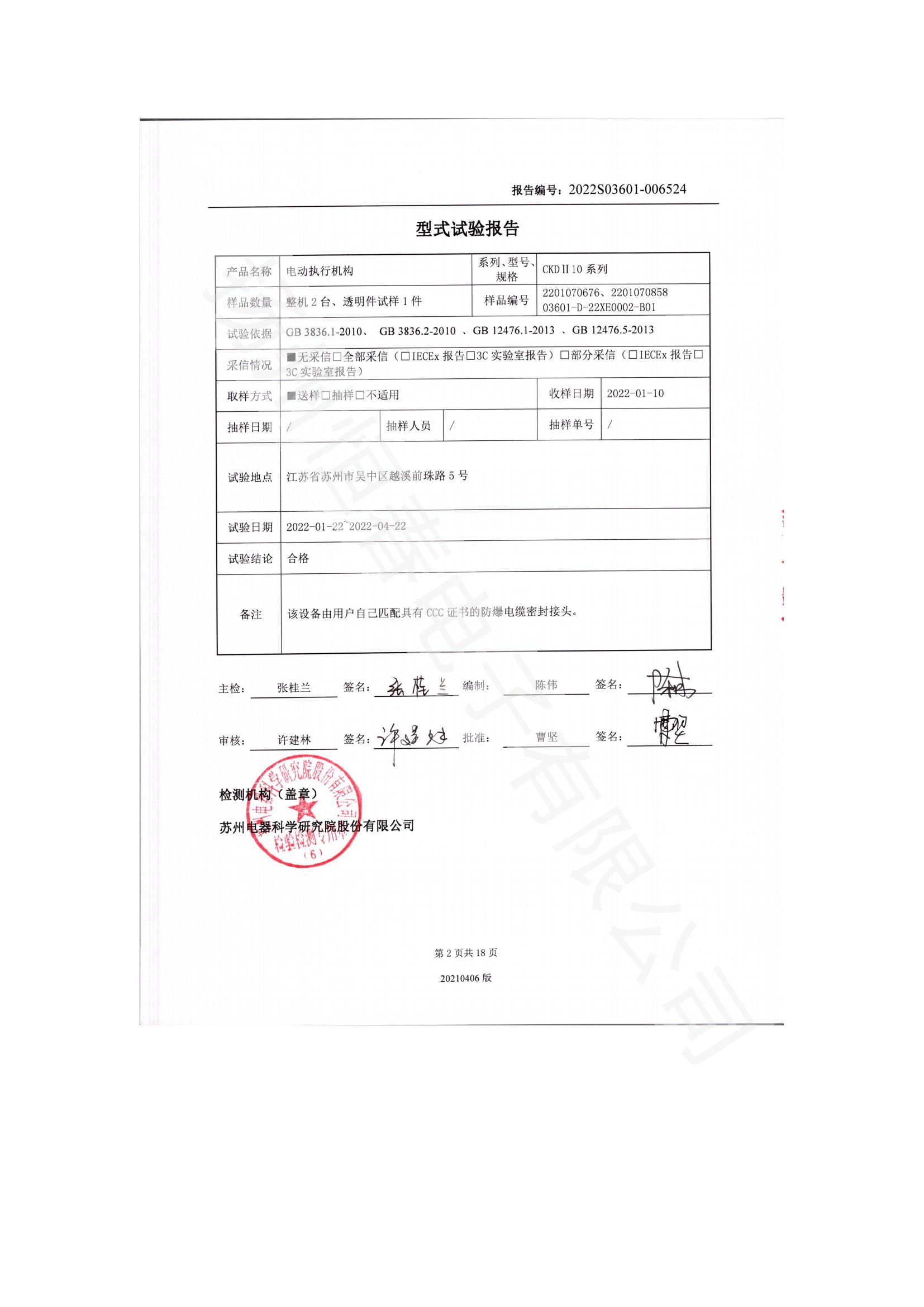 2022S3601-008088 CKDII10型式试验报告