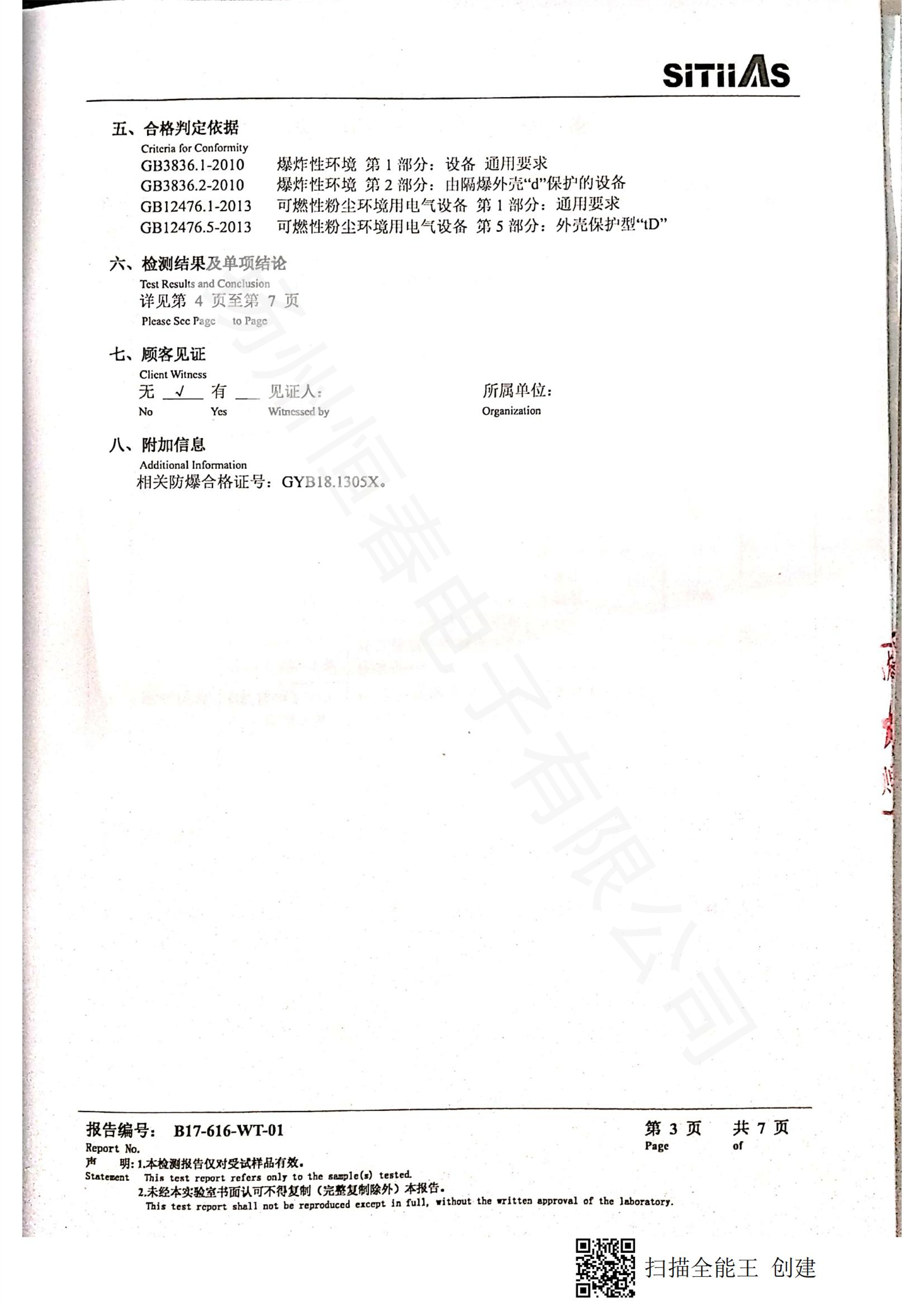 B16-775-WT 防爆电缆密封接头型式试验报告