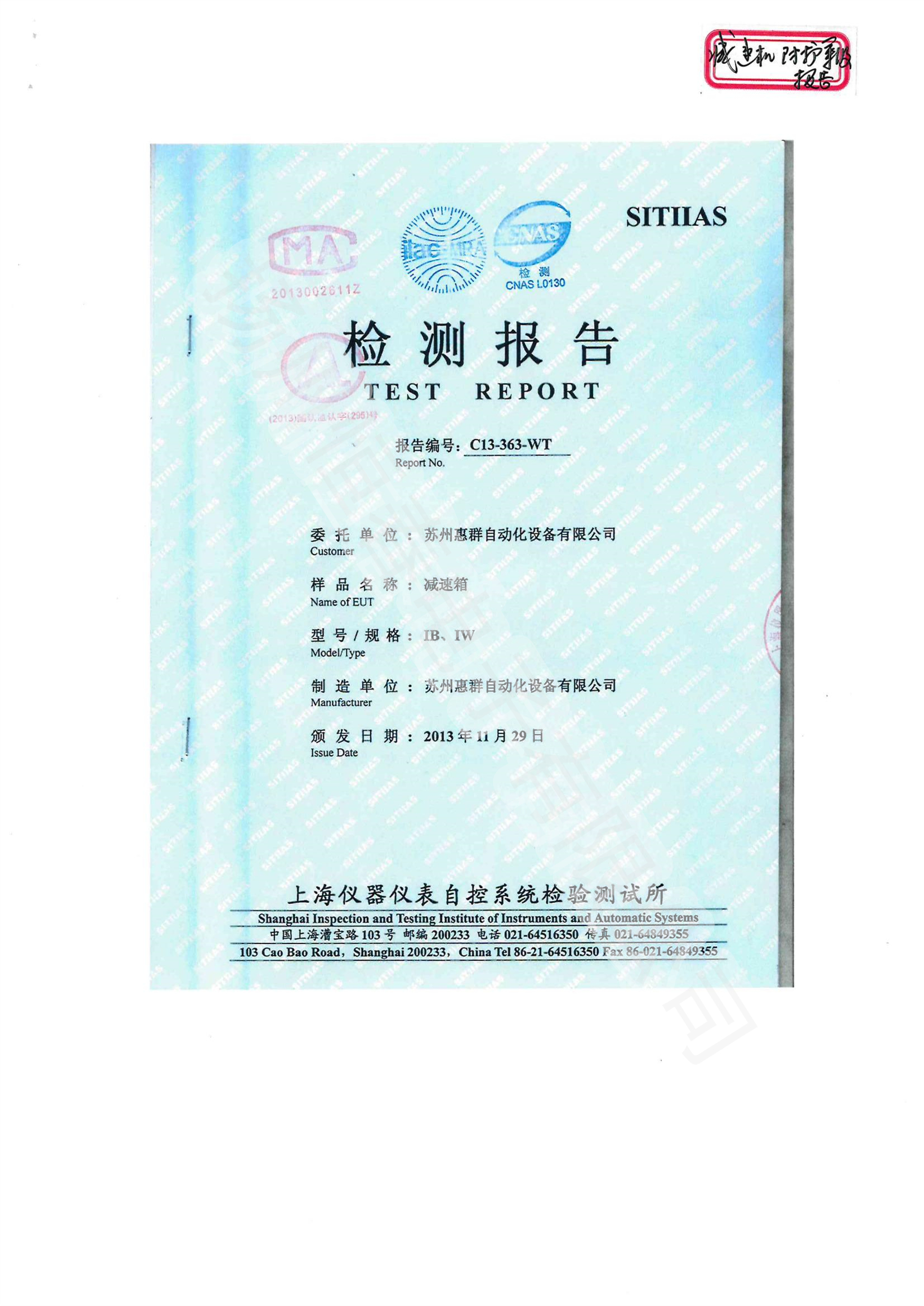 上一篇 C14-015-WT 检测报告-CKD100 -振动、环境温度、湿热、高低温冲击