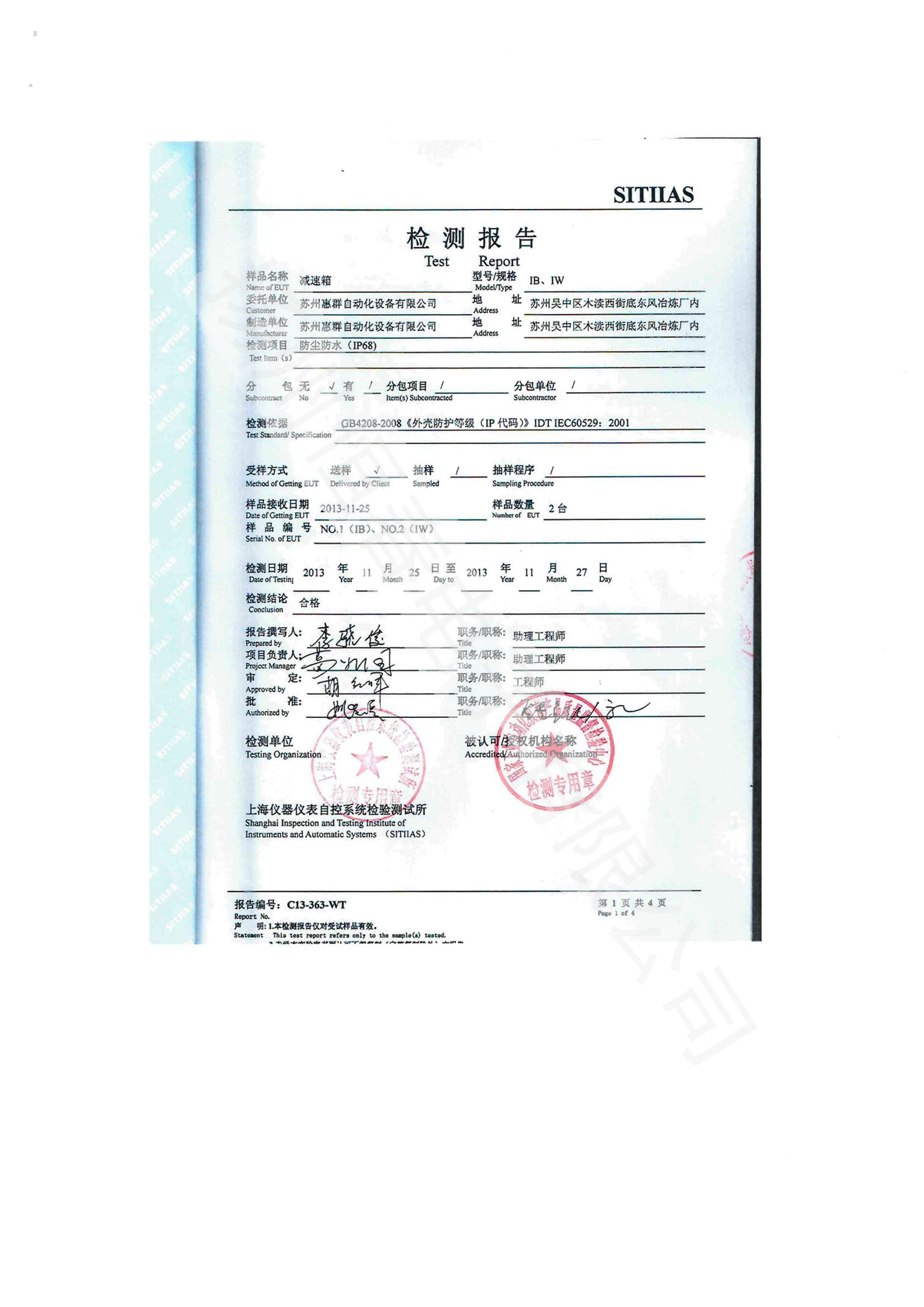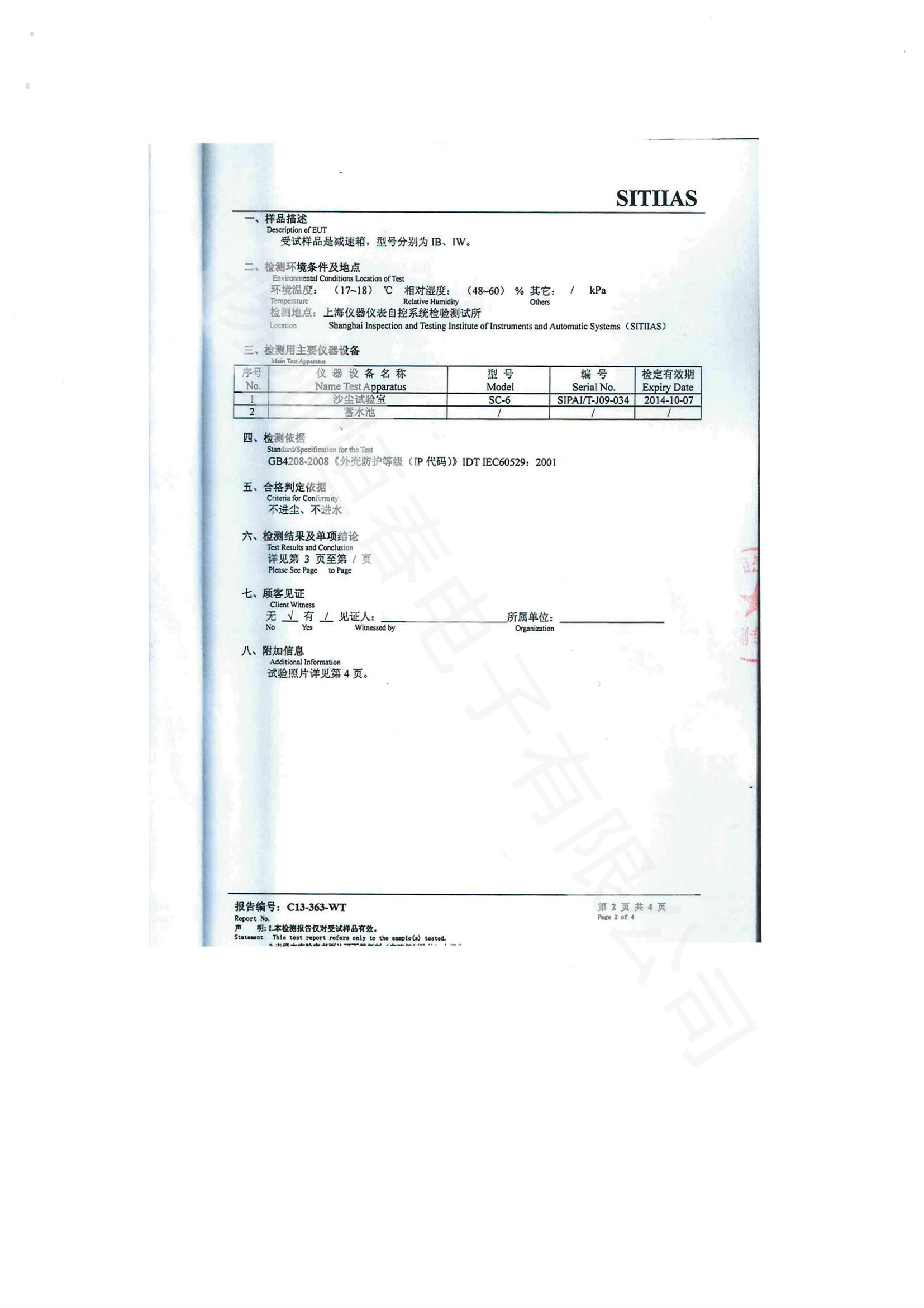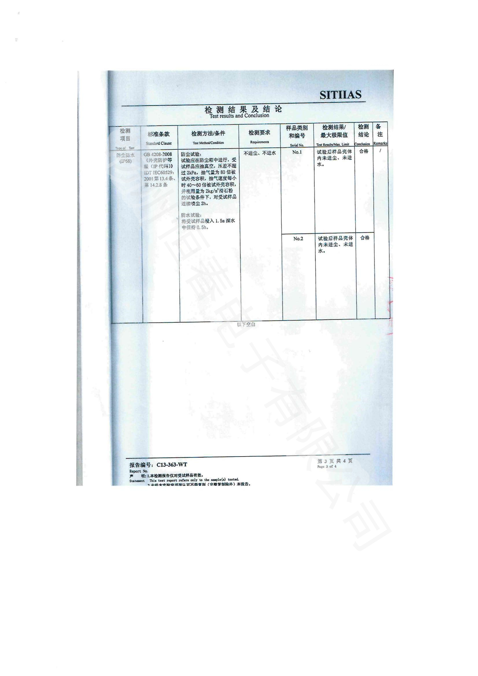 下一篇 C13-304-WT 检测报告-CKD10 -防尘防水(IP68)