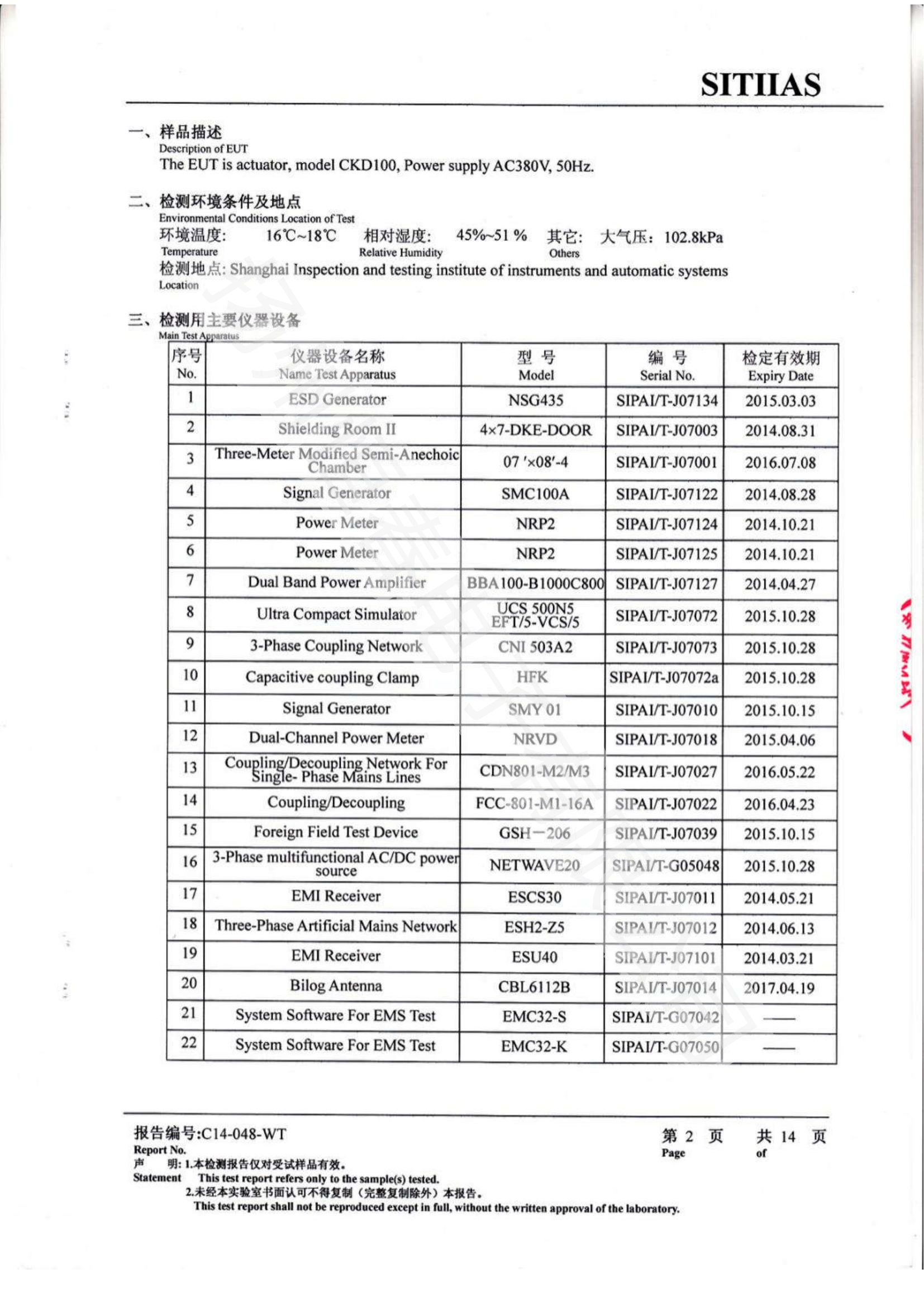 C14-015-WT 检测报告-CKD100 -振动、环境温度、湿热、高低温冲击