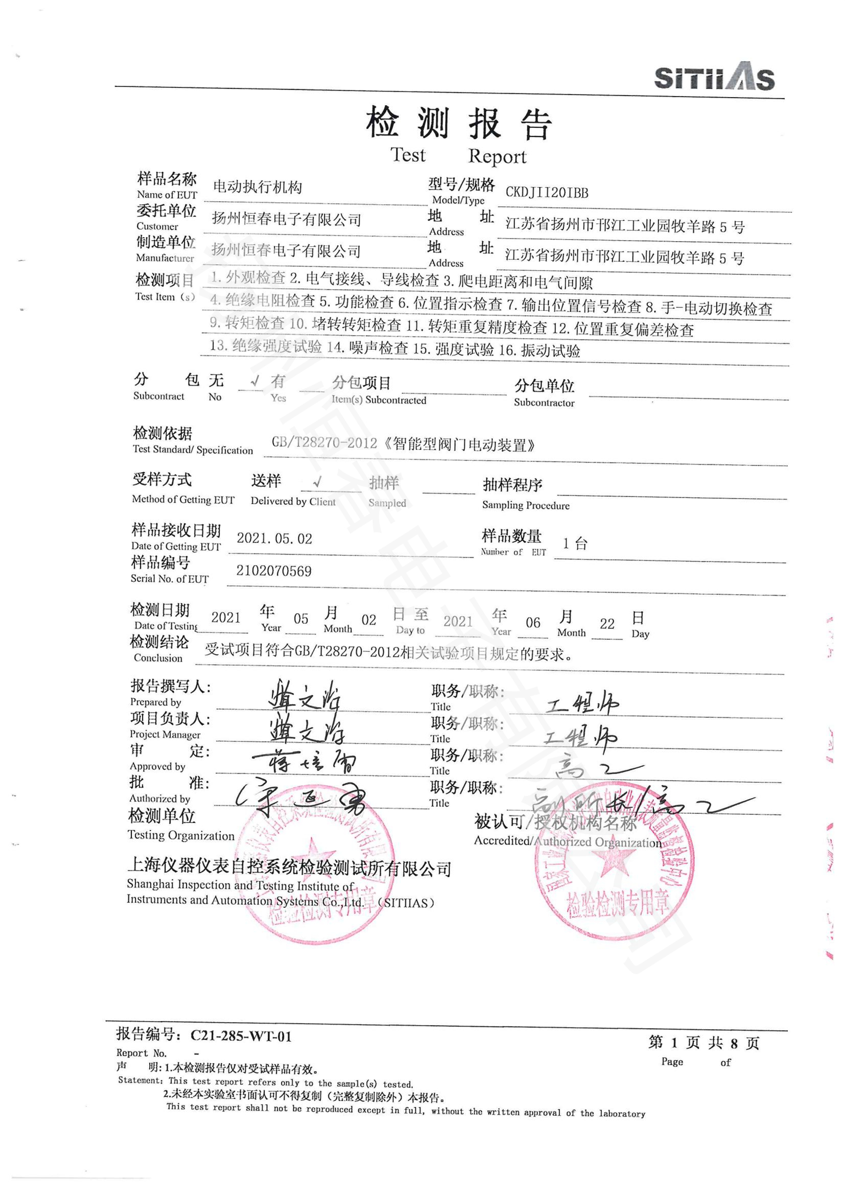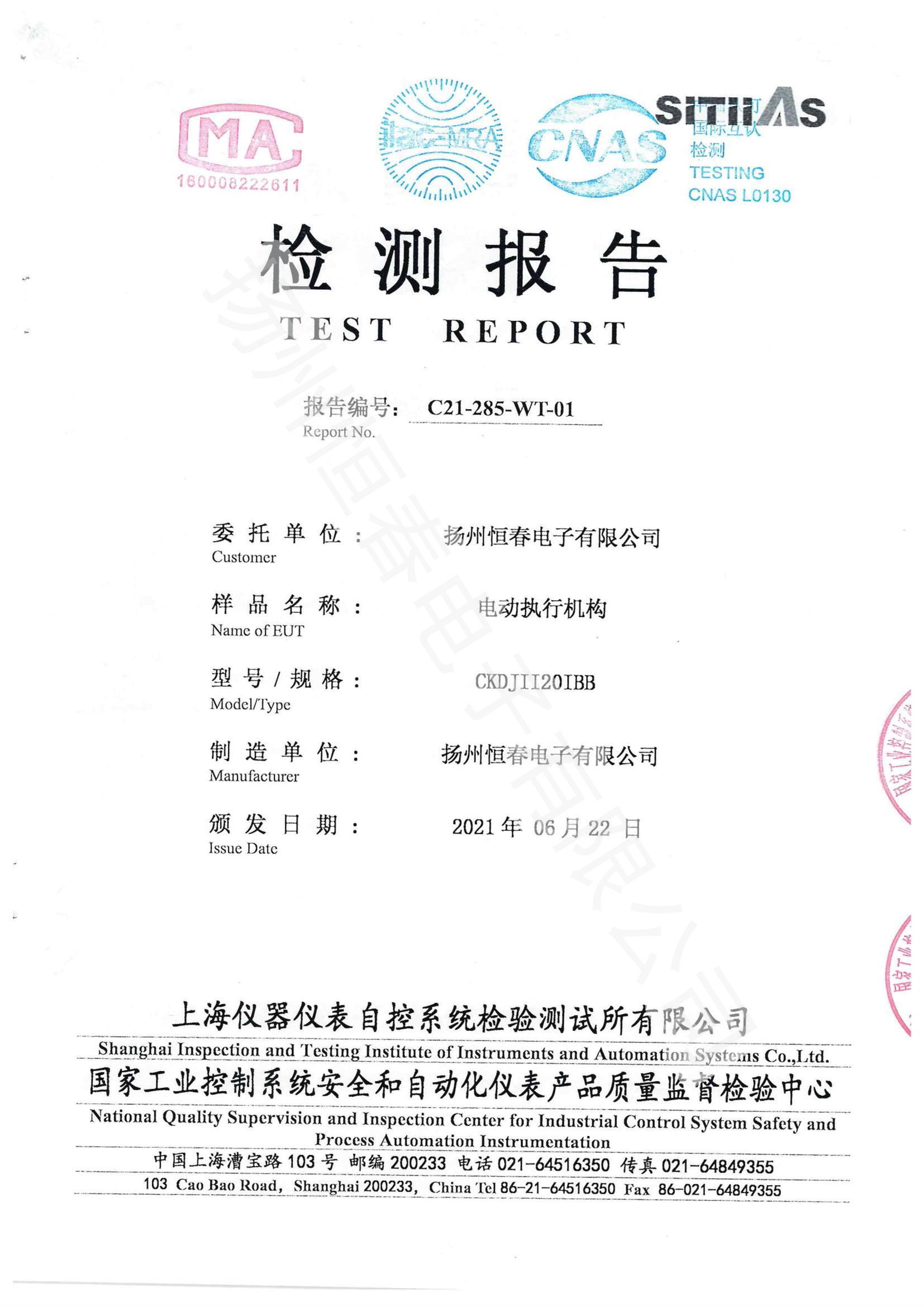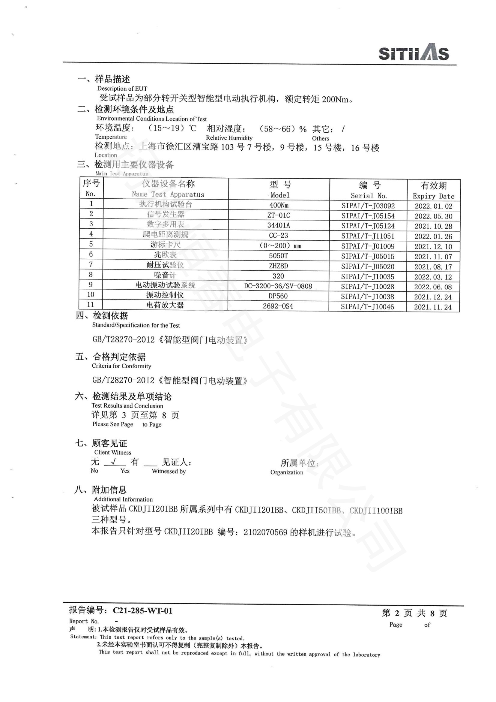 C21-285-WT-01 CKDJII20型式试验