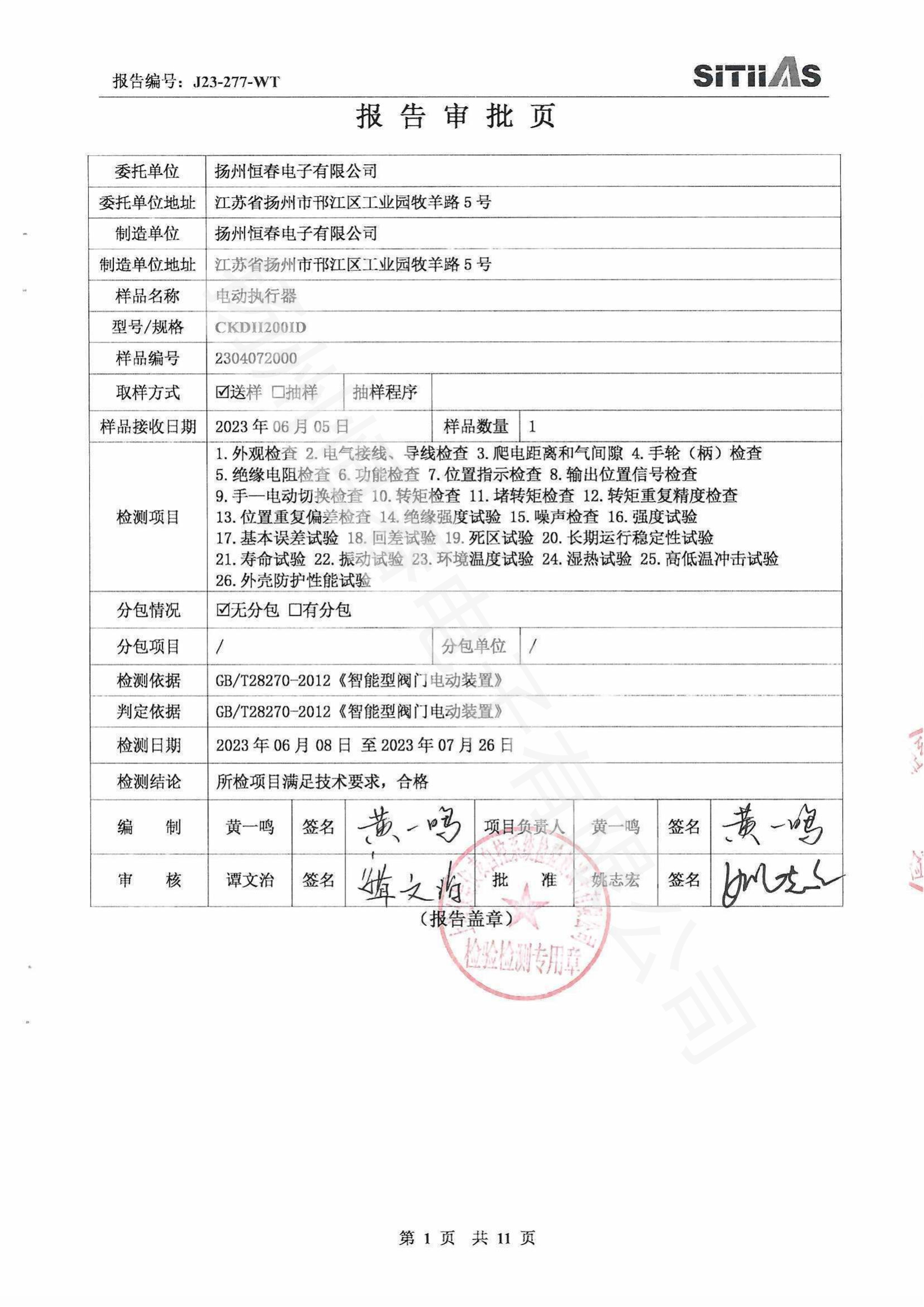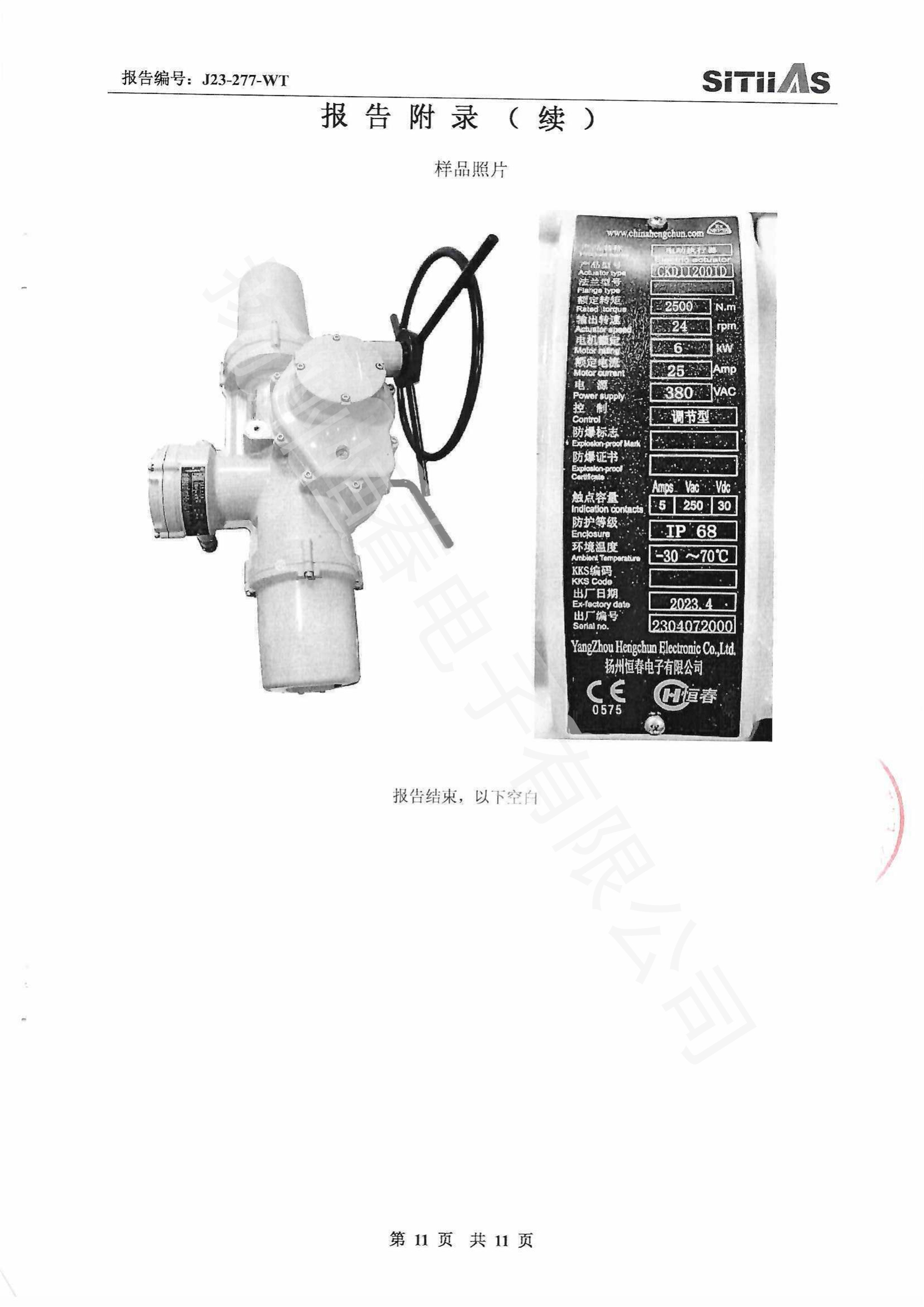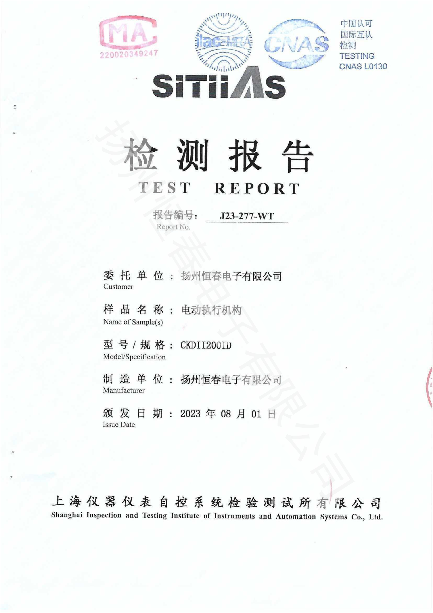 J23-109-HD-03 1E级K3类开关型阀门电动装置检测报告