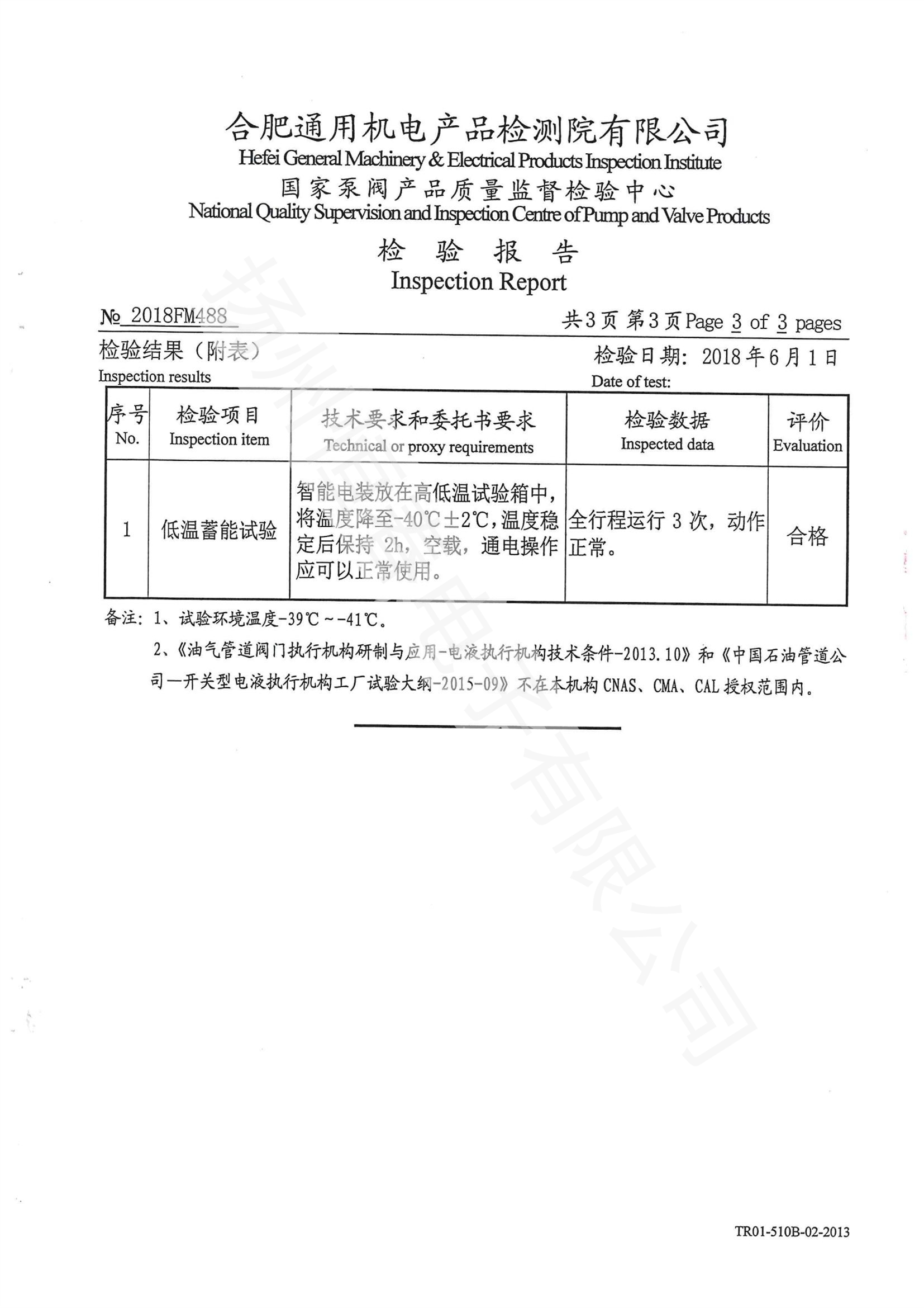 2018FM629检验报告电液低温蓄能试验 合肥所CKDY300