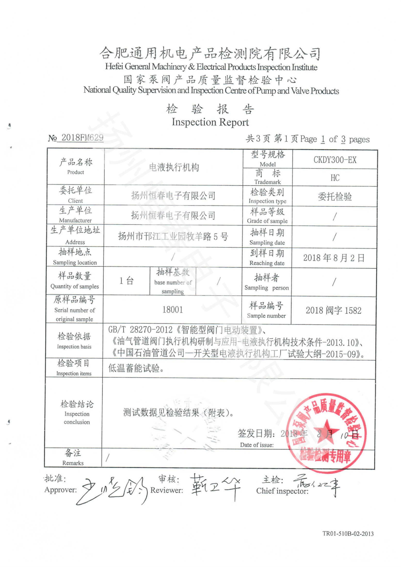 2018FM488 检测报告CKDY300-EX电液执行机构
