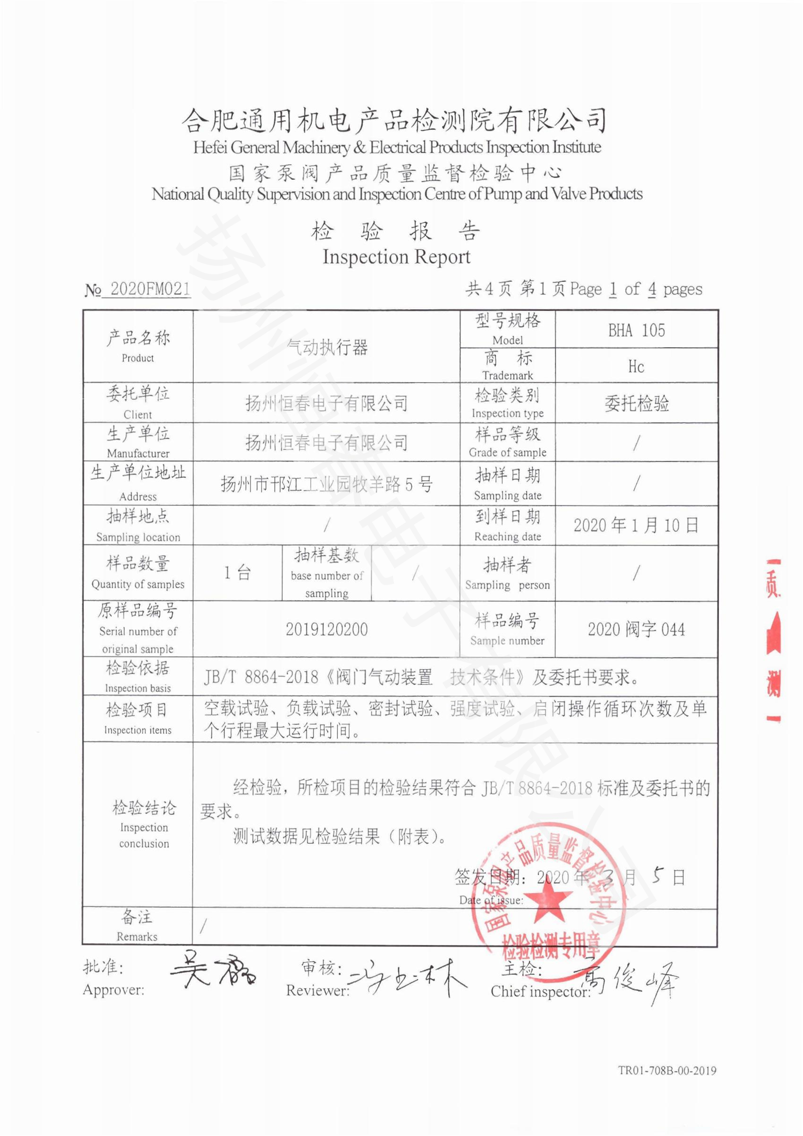 2018FM629检验报告电液低温蓄能试验 合肥所CKDY300